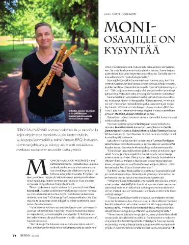Saksofonistina Saunamäki kantaesittää Tuomas Turriagon