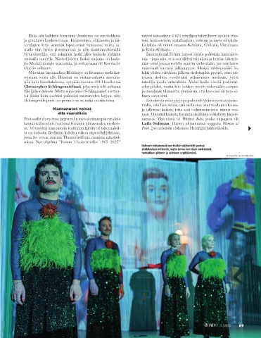 Venetsian biennaalissa Holzinger on luvannut viedä kat-  lahti yhden esityksen jälkeen tiedottajilta pyyntö, ettei esi-