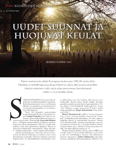 kertoo: ”Prokofjevin noustua korokkeelle sali hiljeni ja samalla al- 1945 Shostakovitshilta odotettiin kansakunnan saavutuk-